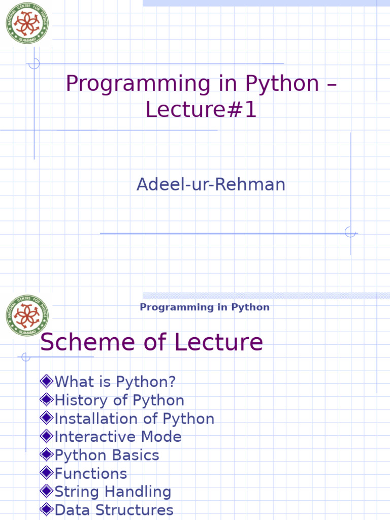 Based on this image's title: “Python Lecture 1 | Introduction to Programming Languages and Python ...