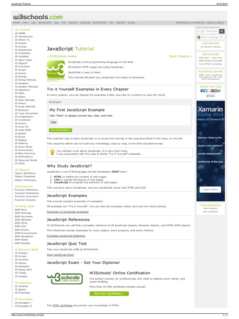 Javascript Tutorial Pdf Examples In Each Chapter This Javascript ...