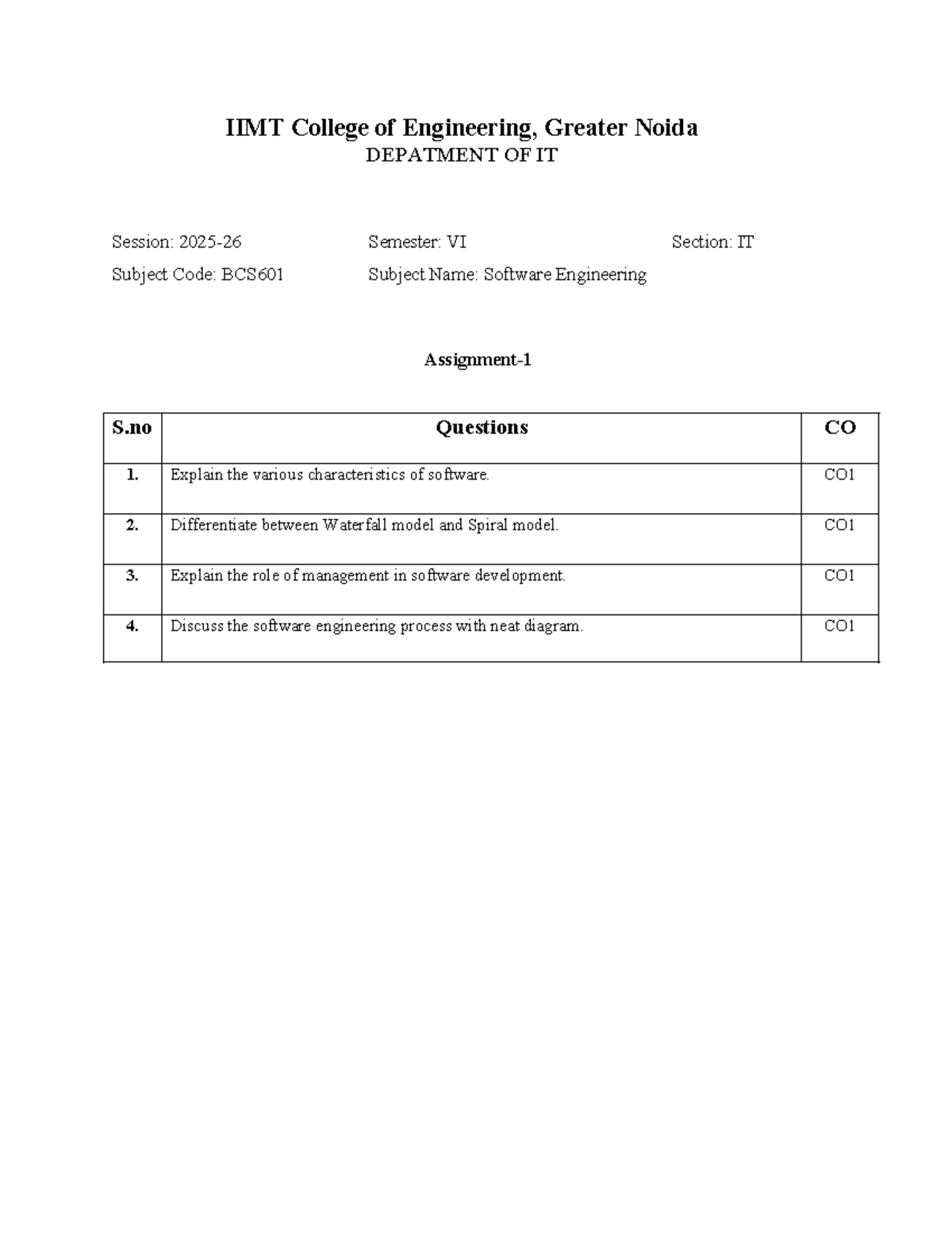 Assignment 1 - Assigment-1 - Software Engineering - IIMT College of ...