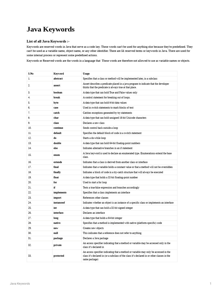 Java Keywords: Comprehensive List | PDF | Class (Computer Programming ...