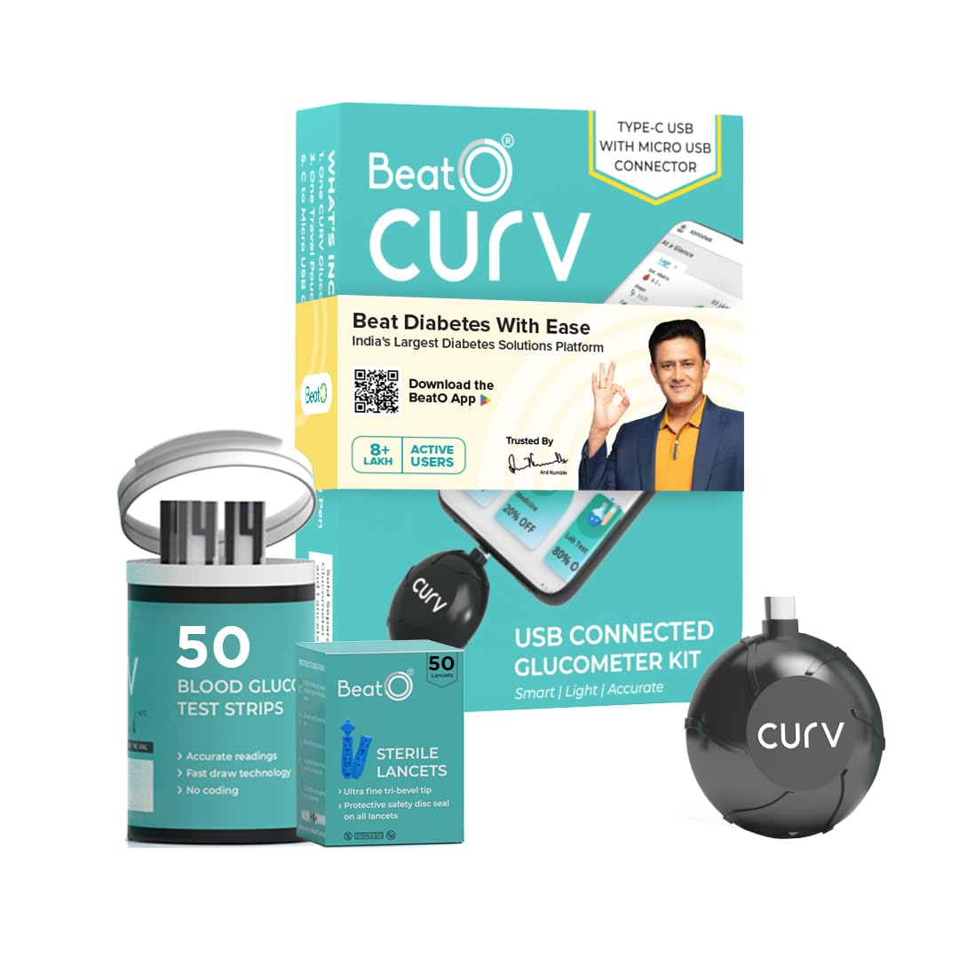 Buy BeatO CURV Sugar Test Machine | FREE 50 Strips & 50 Lancets (Type-C ...