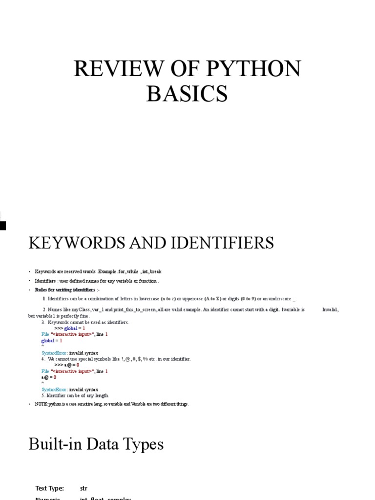 Review of Python Basics | PDF | Data Type | String (Computer Science)