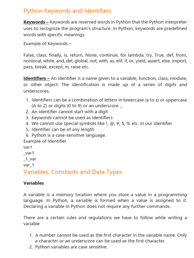 Python Basics: Variables, Data Types, and Operators | PDF | Reserved ...