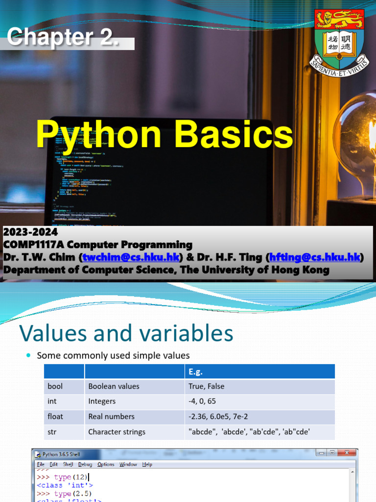 Lec02 Python Basics | PDF | Boolean Data Type | Integer (Computer Science)