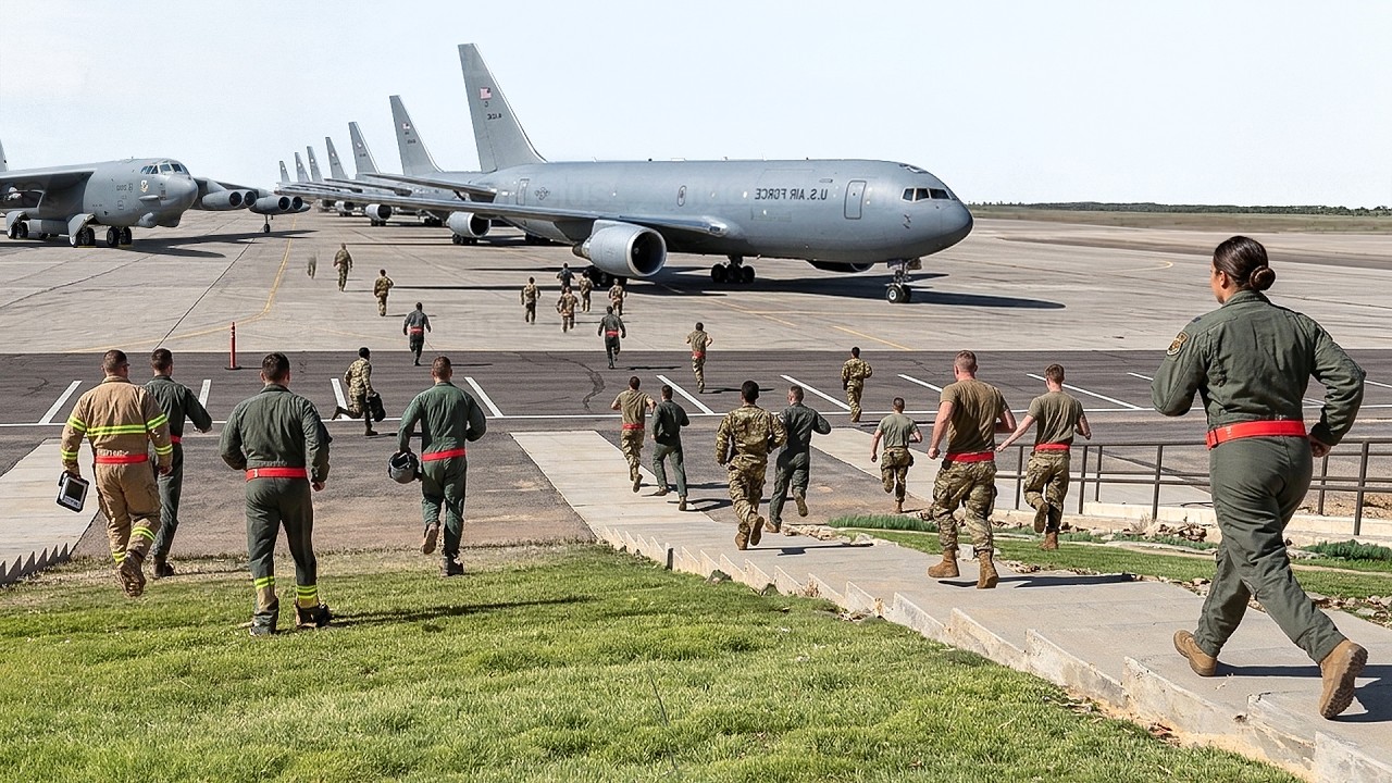 How US Air Force pilots rush to their massive aircraft during red alert