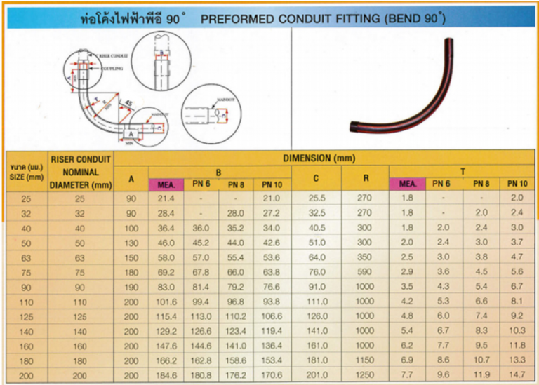 อุปกรณ์ข้อต่อไฟฟ้าแบบโค้ง90°, ท่อโค้งไฟฟ้า90° (90° Bend) - จ.สยามกิจวานิช