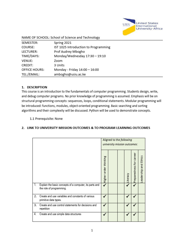 IST 1025 Course Outline | PDF | Computer Programming | Modular Programming