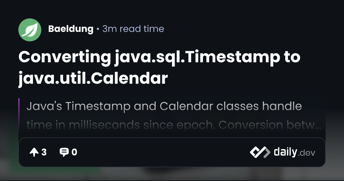 Converting java.sql.Timestamp to java.util.Calendar | daily.dev