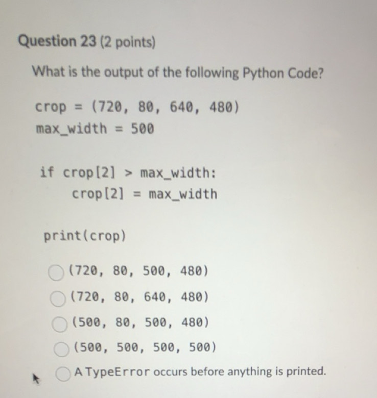 Solved: What is the output of the following Python Code? crop=(72θ ,8θ ...