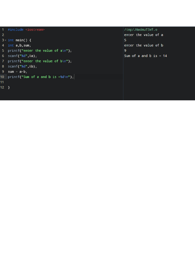 C Program To Read Two Numbers And Print The Sum Of Given Two Numbers ...