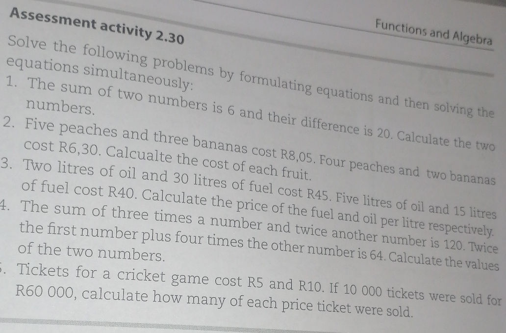 a) The sum of two numbers is 10 and the sum of their squares is 68. (i)..