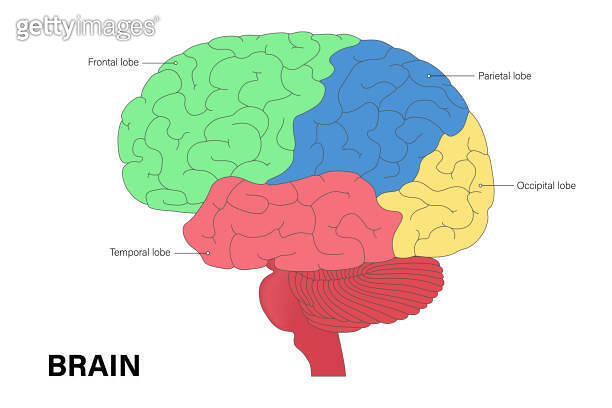Illustration of parietal, occipital, frontal, and temporal lobes in the ...