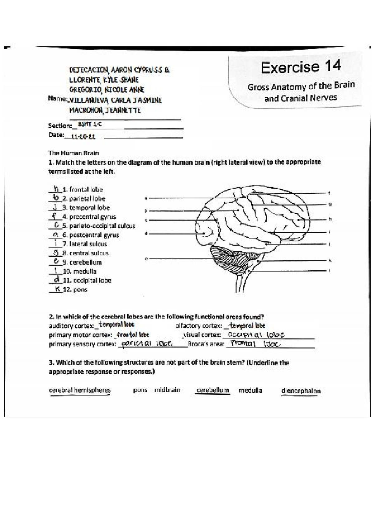 Exercise 14: Gross Anatomy of the Brain and Cranial Nerves (BMT 1L ...
