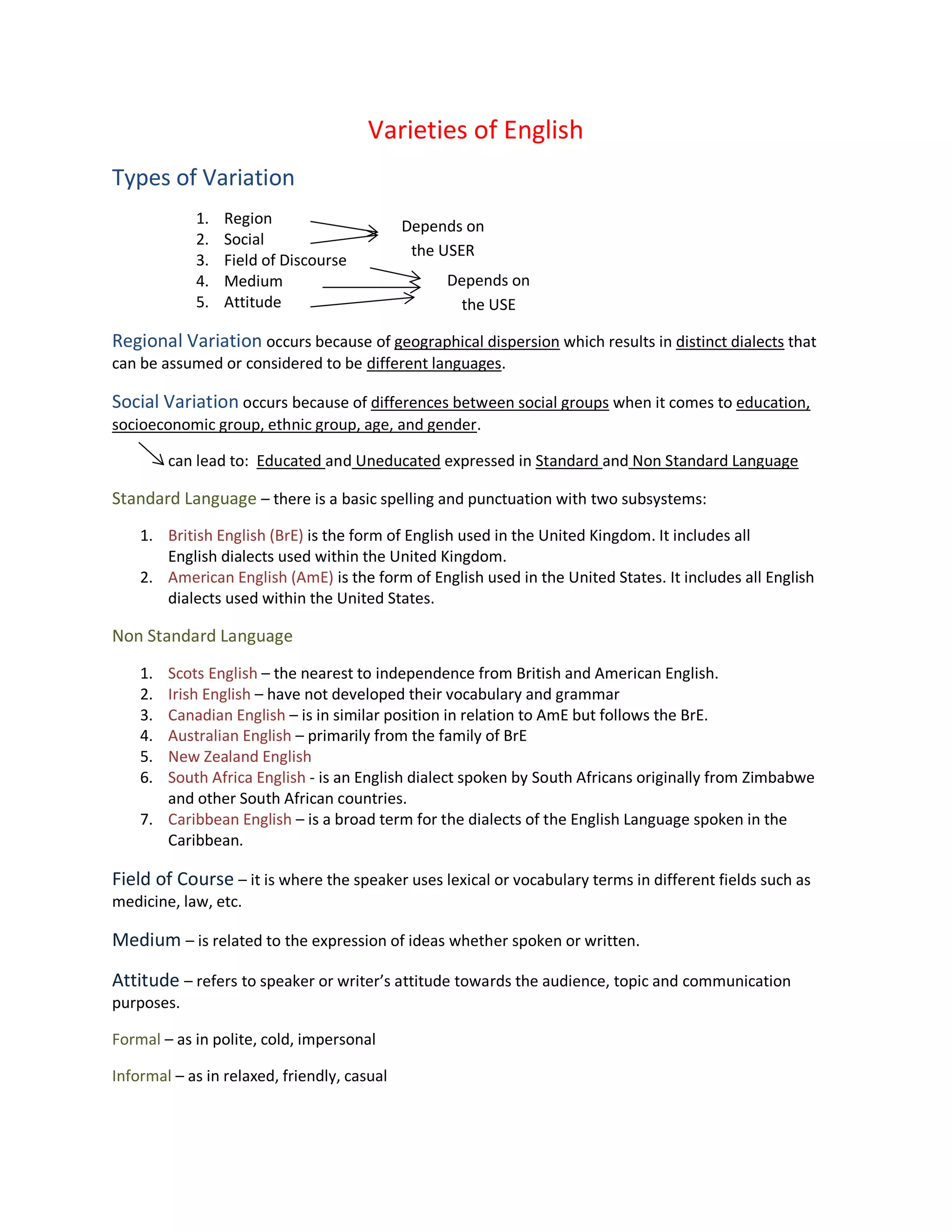 Varieties of English Notes | PDF | Cultural Assimilation | English Language