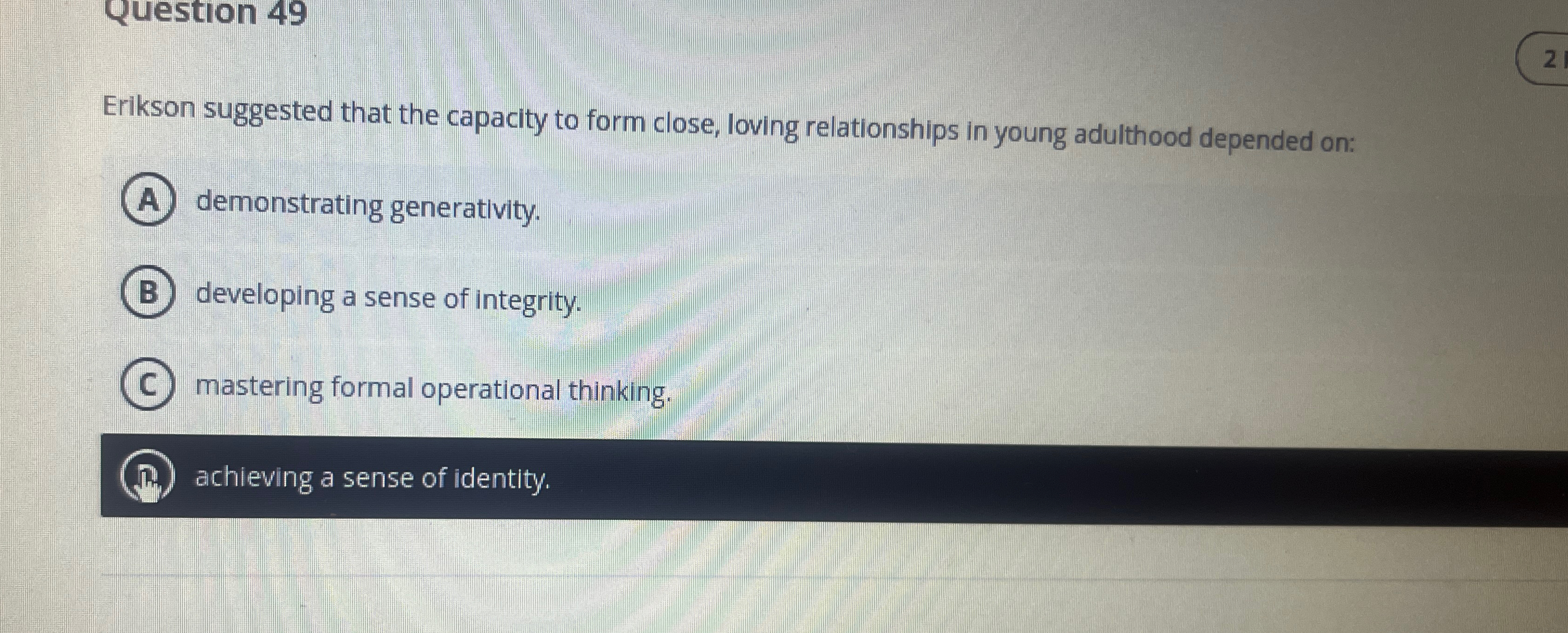 Solved Question 49Erikson suggested that the capacity to | Chegg.com