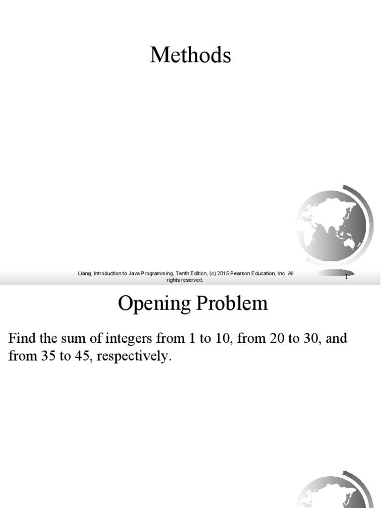 Methods: Liang, Introduction To Java Programming, Tenth Edition, (C ...