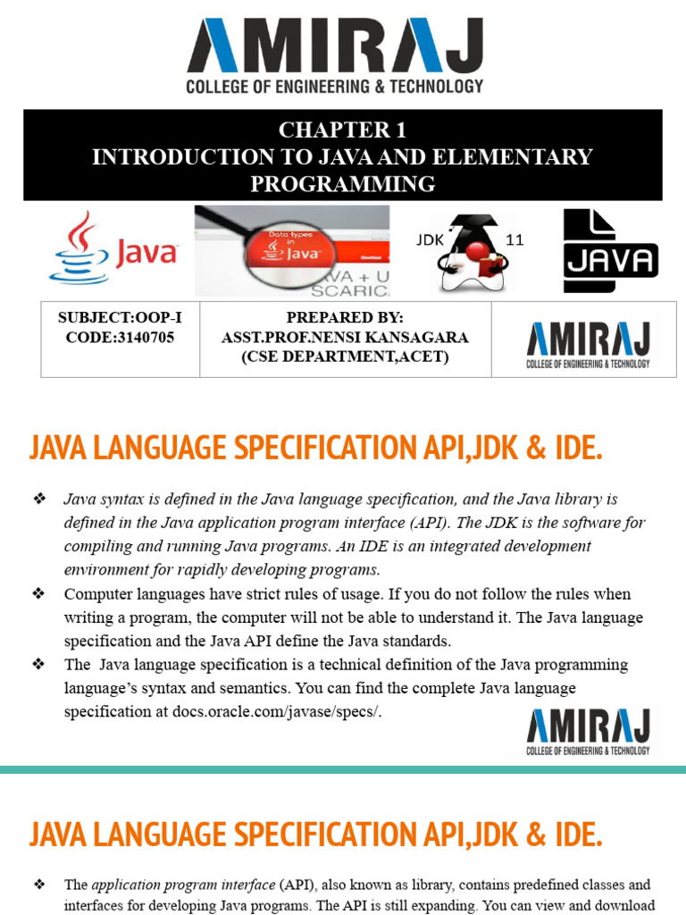 Chapter 1-Introduction To JAVA | PDF | Java (Programming Language ...