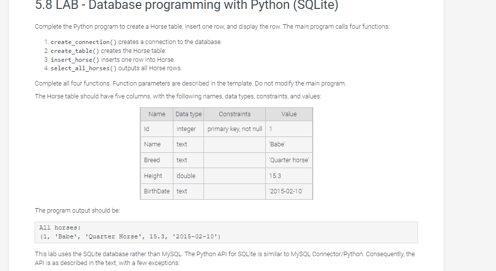 Solved 5.8 LAB - Database programming with Python (SQLite) | Chegg.com