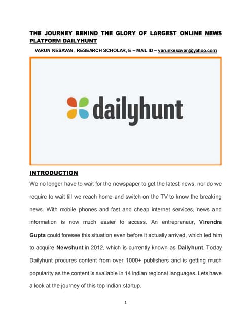 Dailyhunt- The Leading Local News Provider Platform of India! – Samnivesh