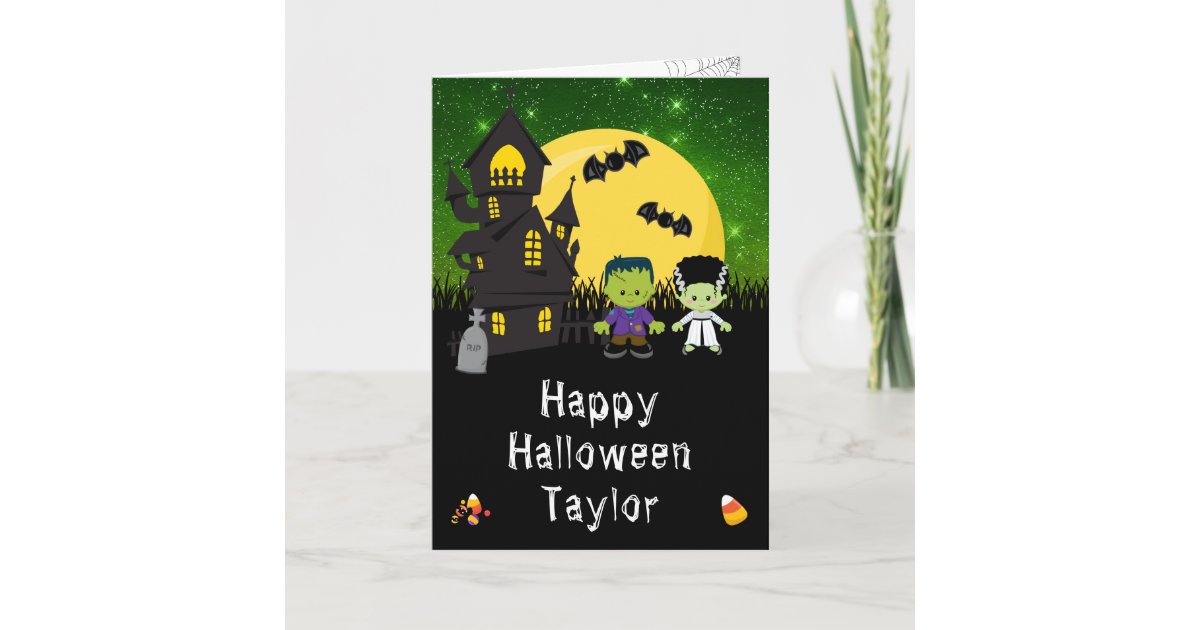 Happy Halloween Monsters Green Card | Zazzle