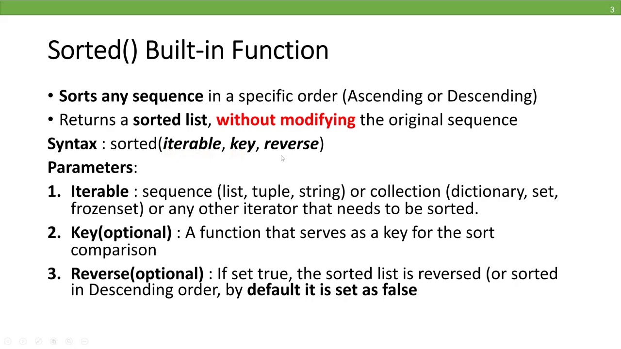 Sorted Function in Python | Python Built in Functions | Learn Python ...