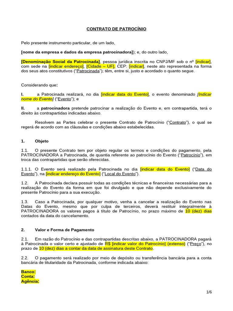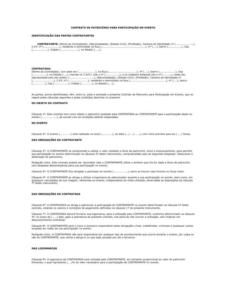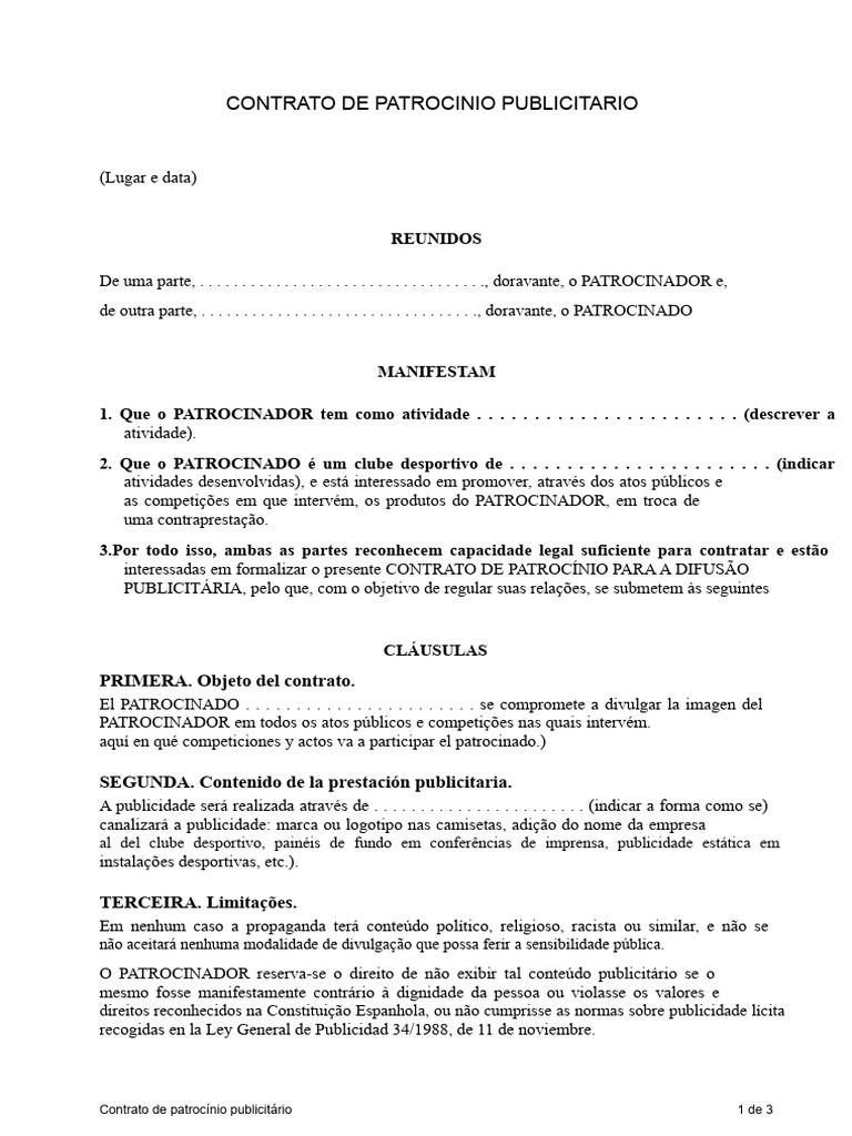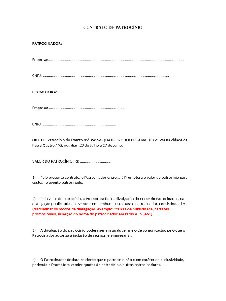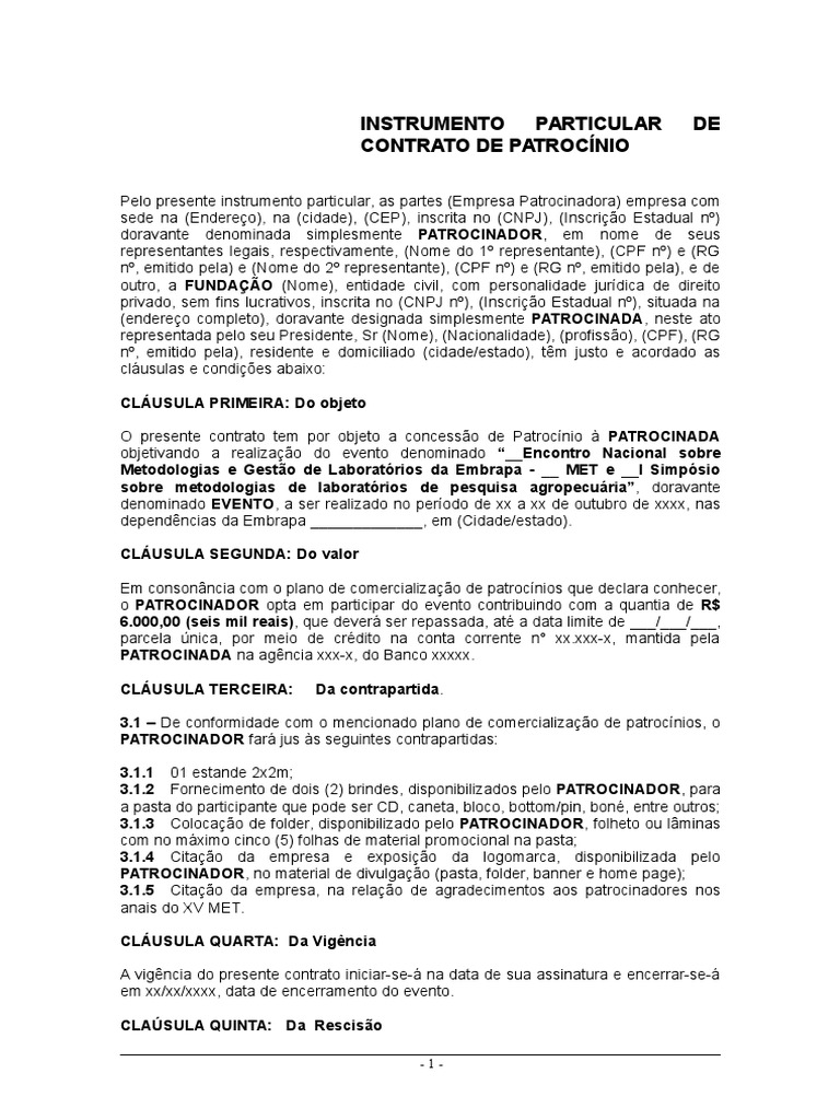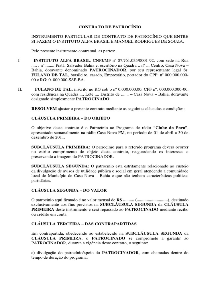 Modelo Contrato de Patrocinio | PDF | Direito Privado | Conceitos jurídicos