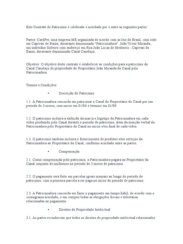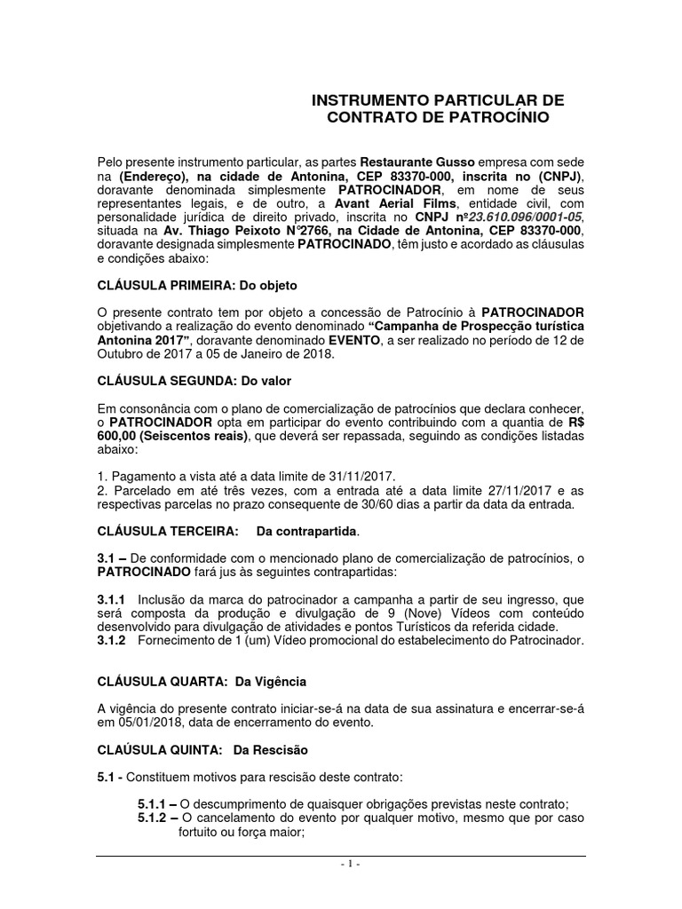Contrato de Patrocínio | PDF | Direito Privado | Direito Comercial