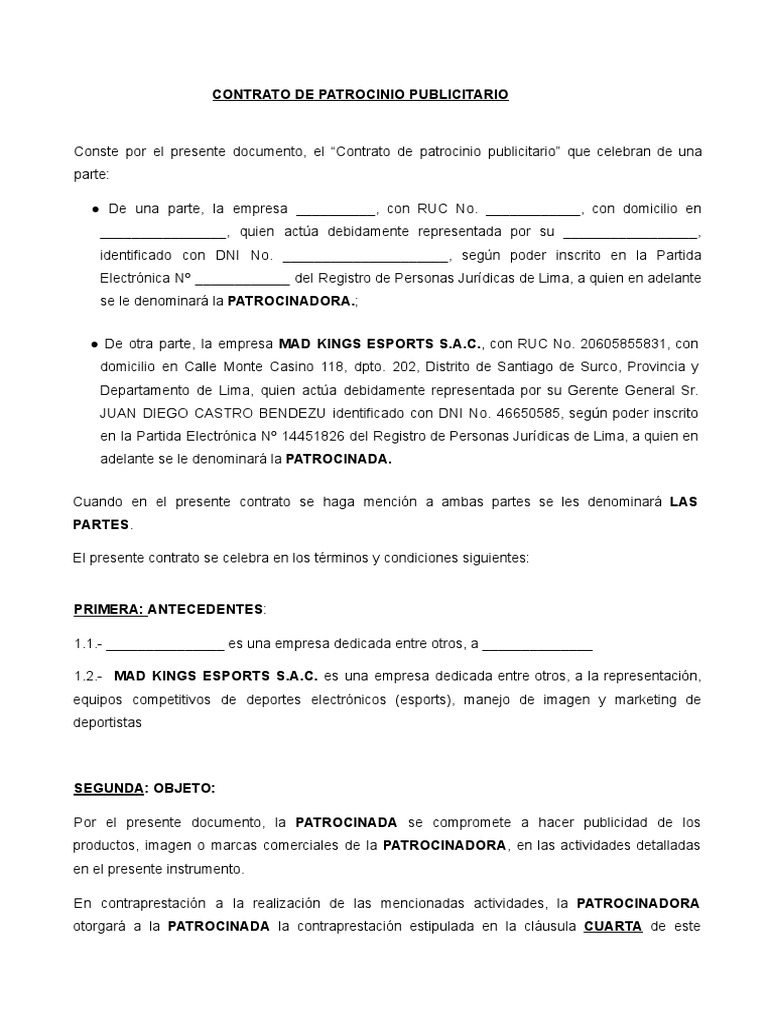 Modelo Contrato Patrocinio Deportivo | PDF | Business | Deportes