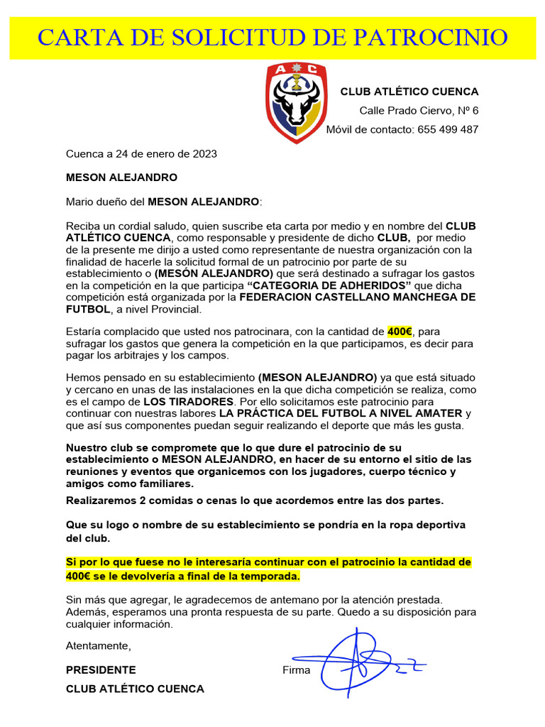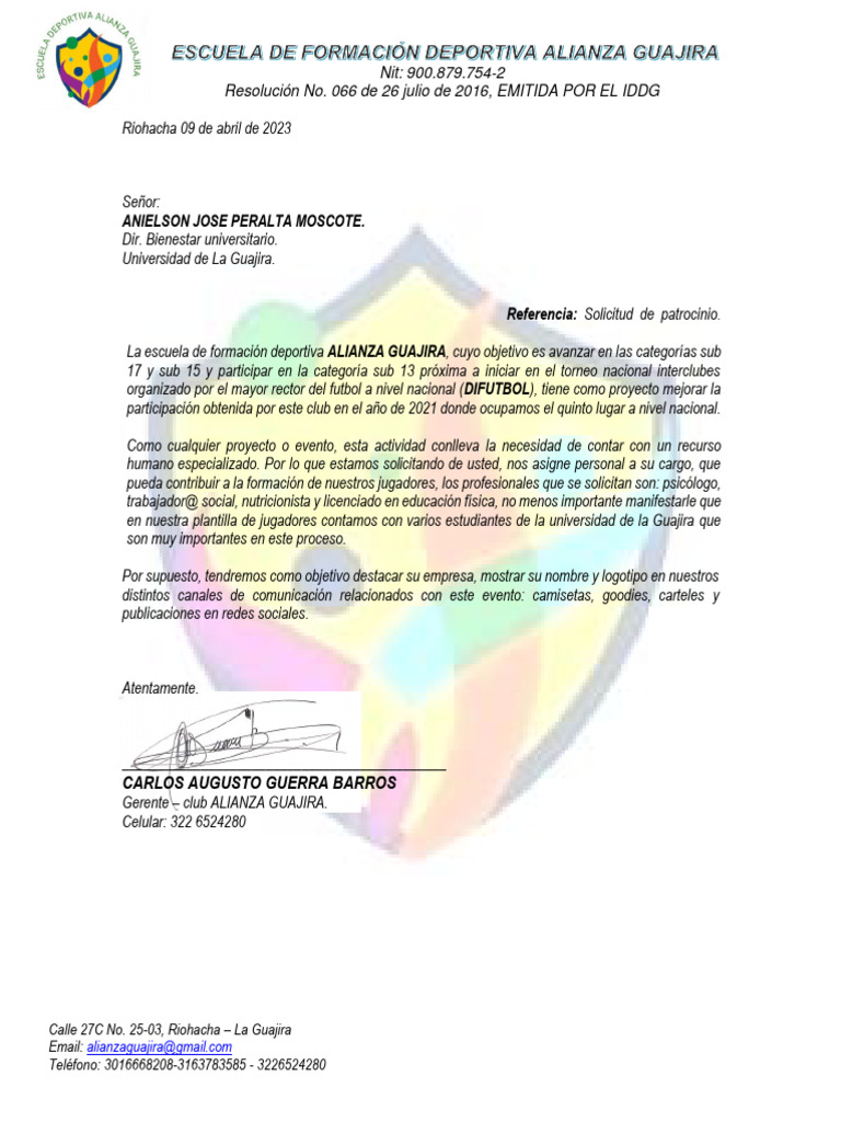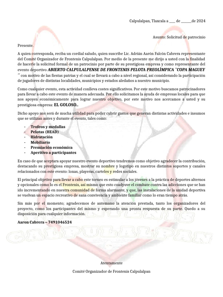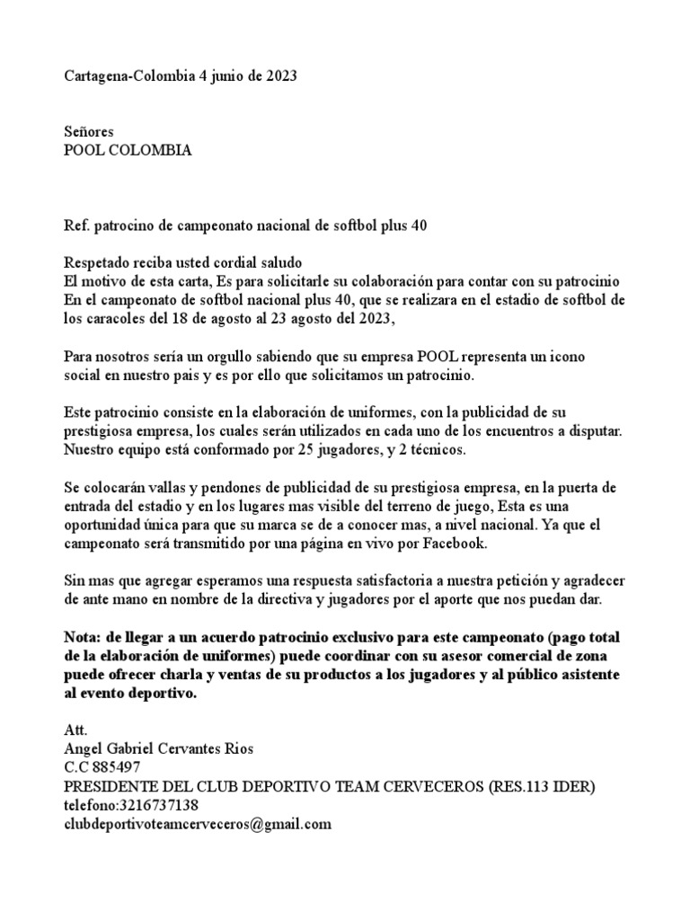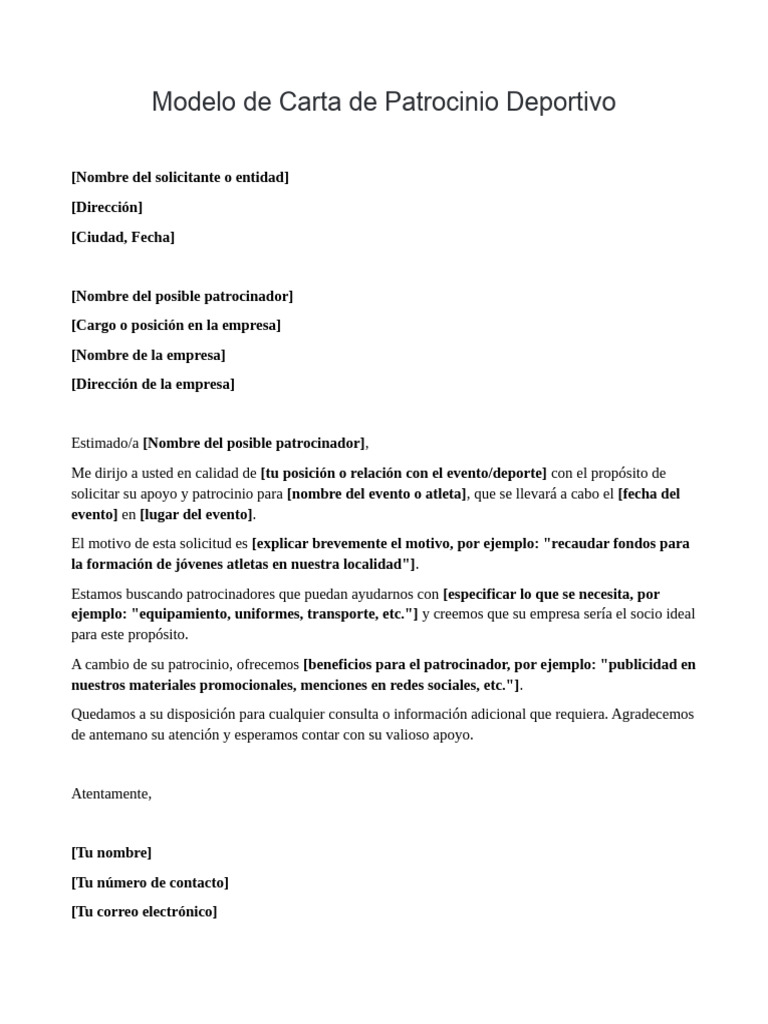 Modelo-de-Carta-de-Patrocinio-Deportivo | PDF
