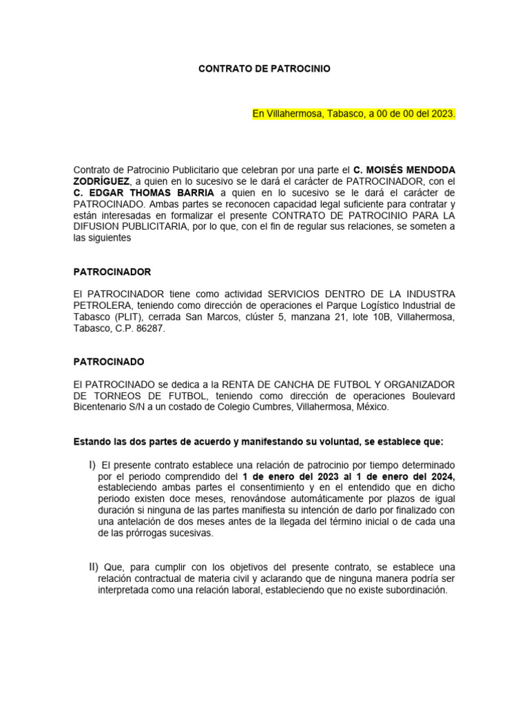 Contrato de Patrocinio - Modelo en Formatos Word y PDF