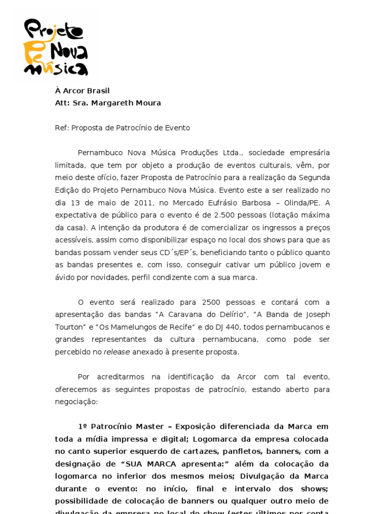 Modelo - Proposta de Patrocínio (Arcor) | PDF
