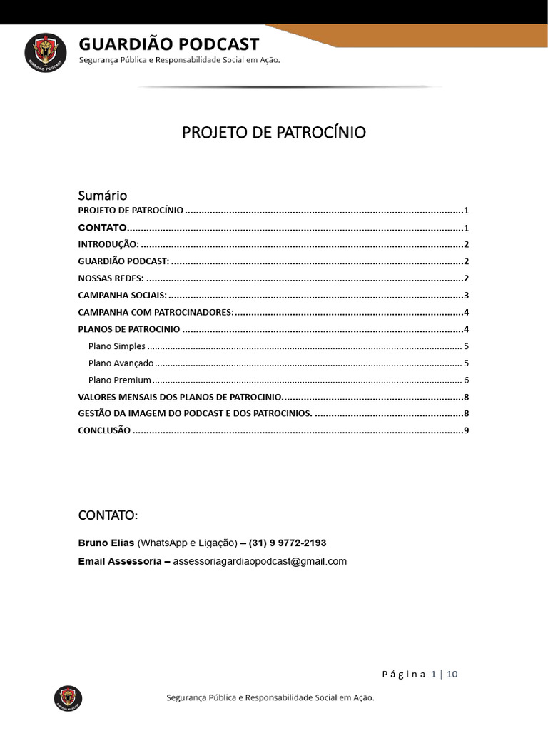 Projeto de Patrocínio | PDF | Podcast | Publicidade