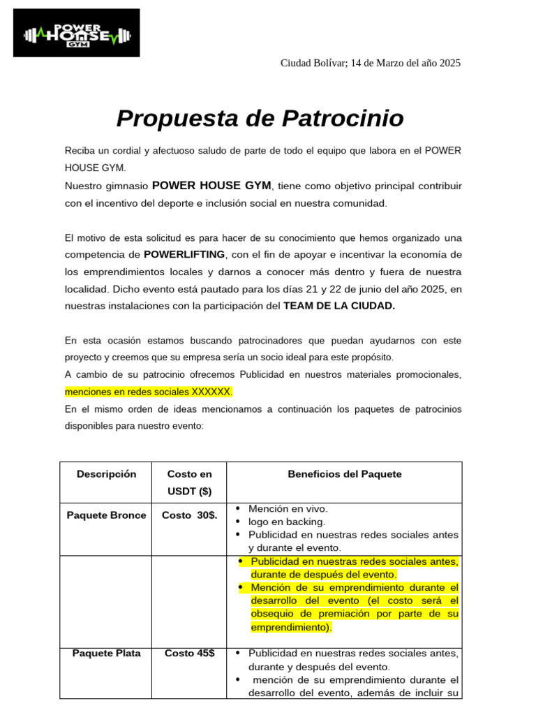 Patrocinio Carta | PDF | Patrocinador (Comercial)