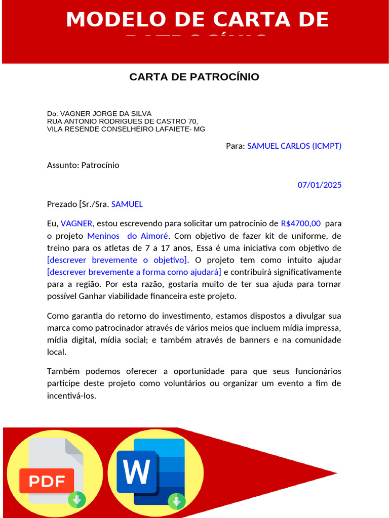 Carta de Patrocinio - Pedido de Patrocínio | PDF