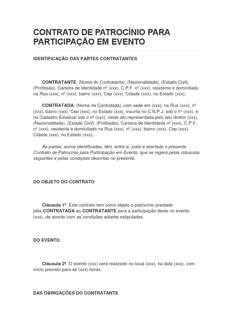 Contrato de Patrocínio para Evento | PDF | Negócios | Direito