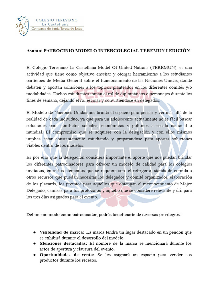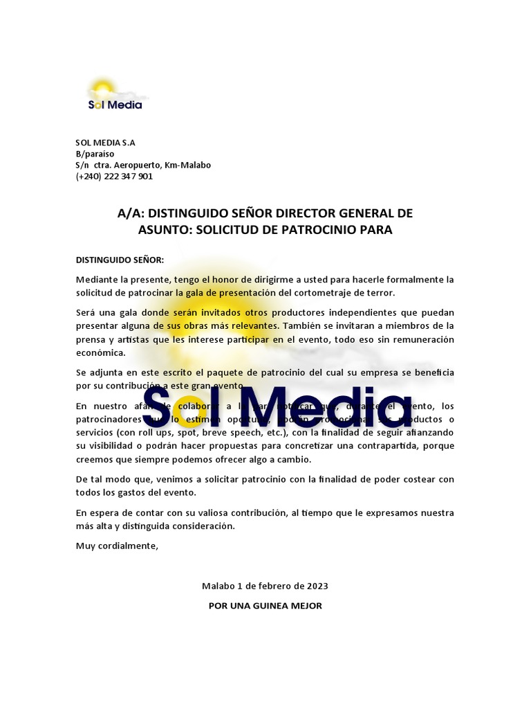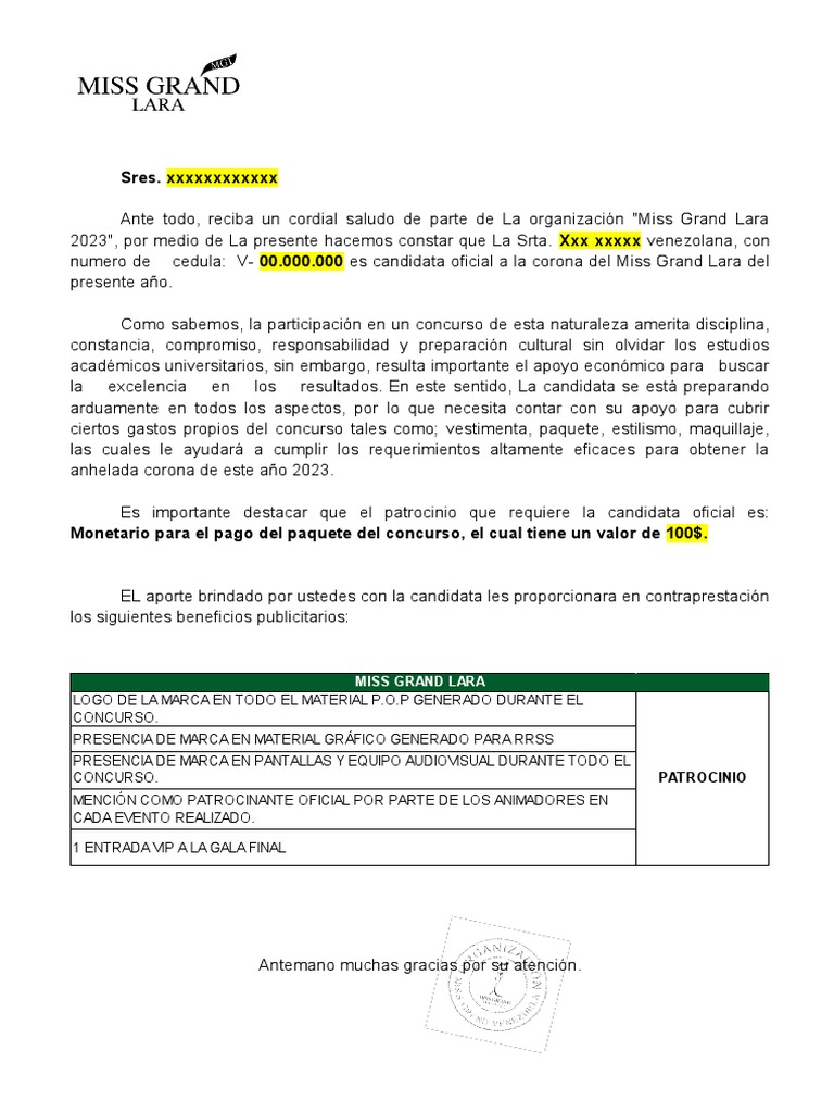 Modelo de Carta Patrocinio | PDF | Negocios | Finanzas y dinero