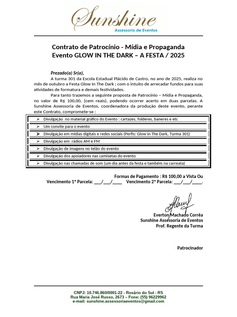 Projeto de Patrocínio para Eventos - Patrocínio Direto 1 | PDF | Tempo
