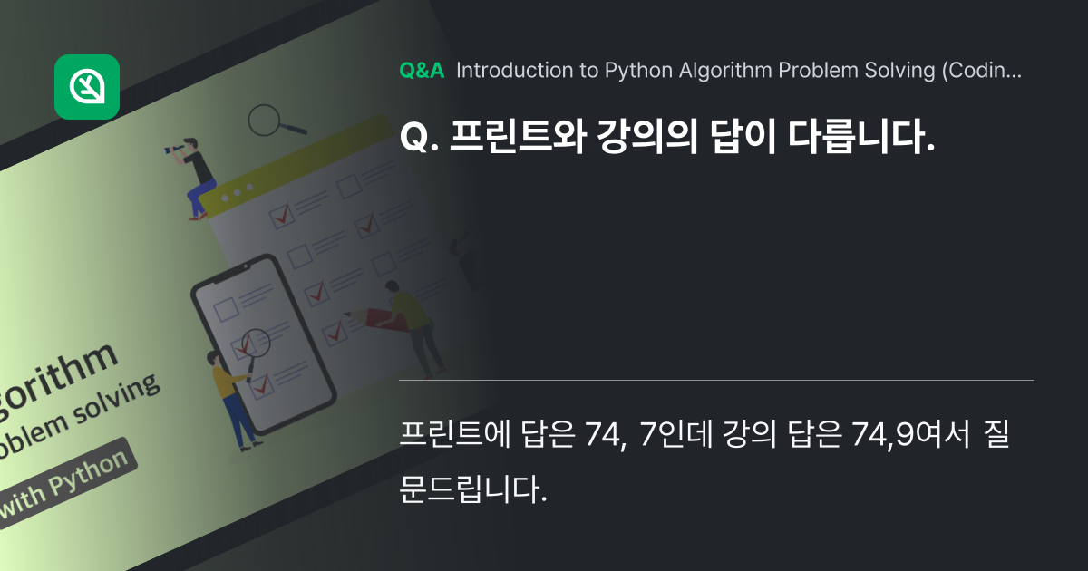 프린트와 강의의 답이 다릅니다. - Inflearn | Community Q&A