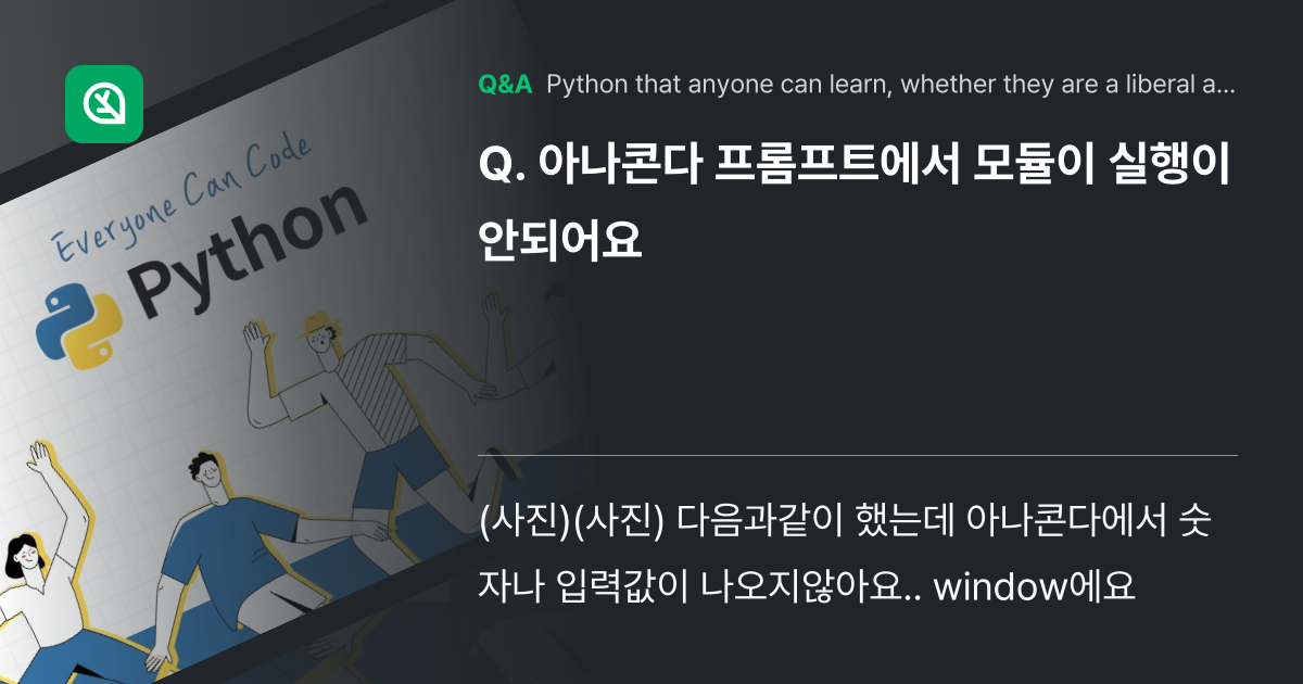 아나콘다 프롬프트에서 모듈이 실행이 안되어요 - Inflearn | Community Q&A