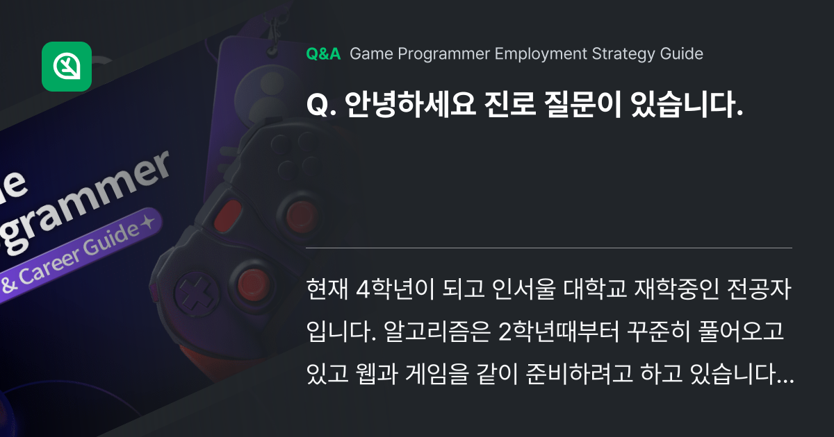 안녕하세요 진로 질문이 있습니다. - Inflearn | Community Q&A