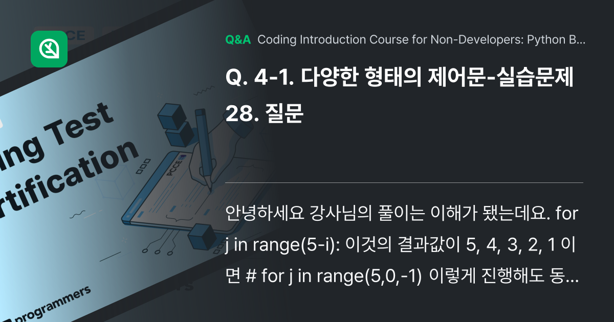 4-1. 다양한 형태의 제어문-실습문제28. 질문 - Inflearn | Community Q&A