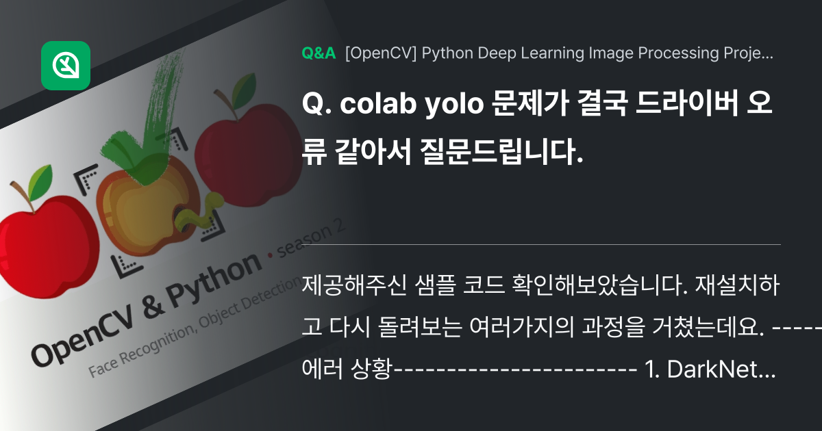 colab yolo 문제가 결국 드라이버 오류 같아... - Inflearn | Community Q&A