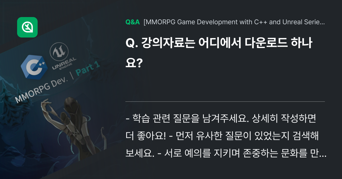 강의자료는 어디에서 다운로드 하나요? - Inflearn | Community Q&A