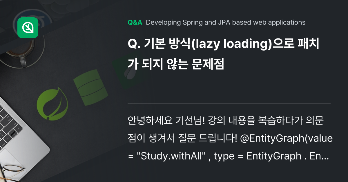기본 방식(lazy loading)으로 패치가 되지... - Inflearn | Community Q&A