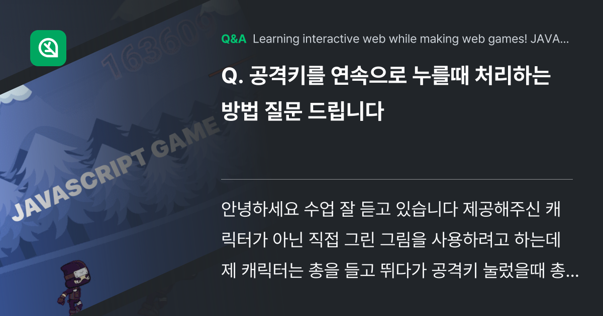 공격키를 연속으로 누를때 처리하는 방법 질문 드립니... - Inflearn | Community Q&A