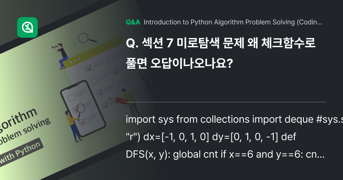 섹션 7 미로탐색 문제 왜 체크함수로 풀면 오답이나... - Inflearn | Community Q&A