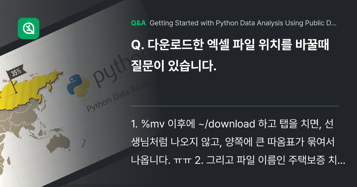 다운로드한 엑셀 파일 위치를 바꿀때 질문이 있습니다... - Inflearn | Community Q&A