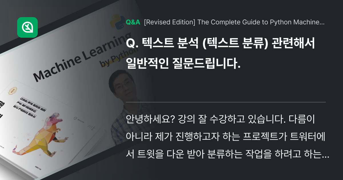 텍스트 분석 (텍스트 분류) 관련해서 일반적인 질문... - Inflearn | Community Q&A