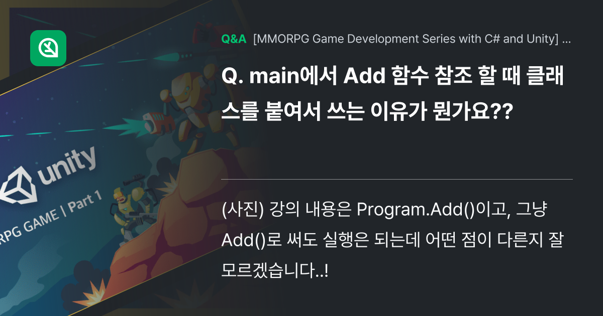 main에서 Add 함수 참조 할 때 클래스를 붙여... - Inflearn | Community Q&A