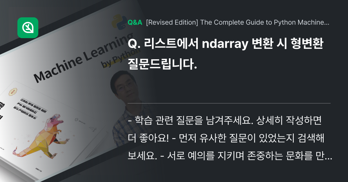 리스트에서 ndarray 변환 시 형변환 질문드립니... - Inflearn | Community Q&A